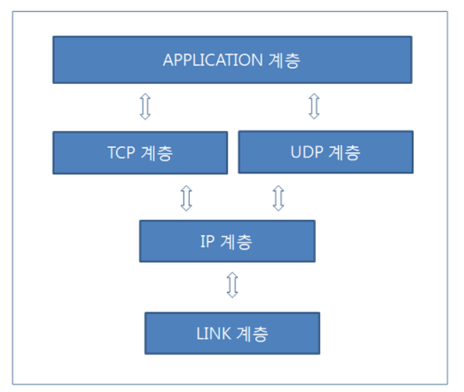 인터넷 계층(IP), 네트워크 인터페이스 계층으로 구성된다.